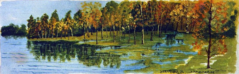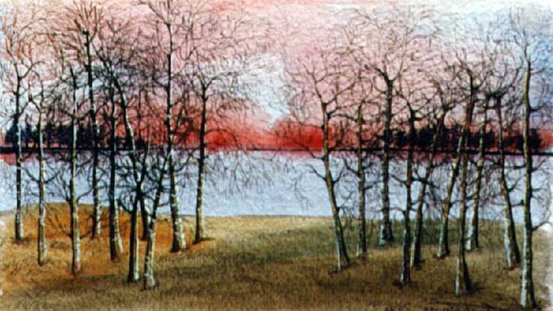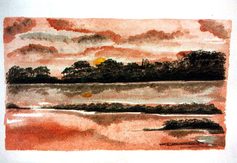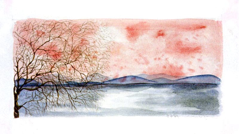 tramonto sul lago 40×30 acquarello