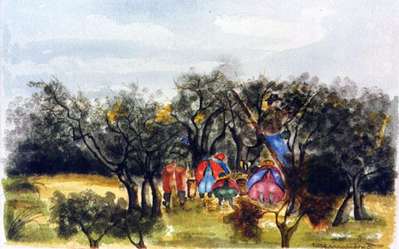 raccoglitrici di olive 50×40 acquarello